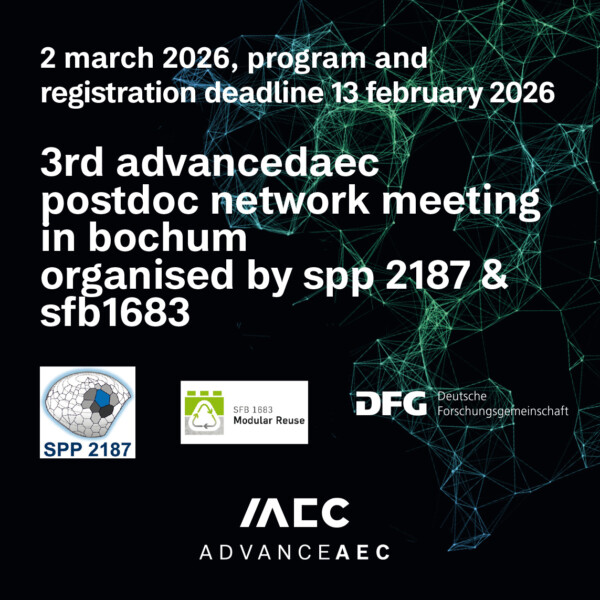 The “Research Network for Advancing Architecture, Engineering and Construction” (AdvanceAEC) brings together national and international researchers who strive to advance architecture, engineering and construction through digital technologies and an interdisciplinary approach.