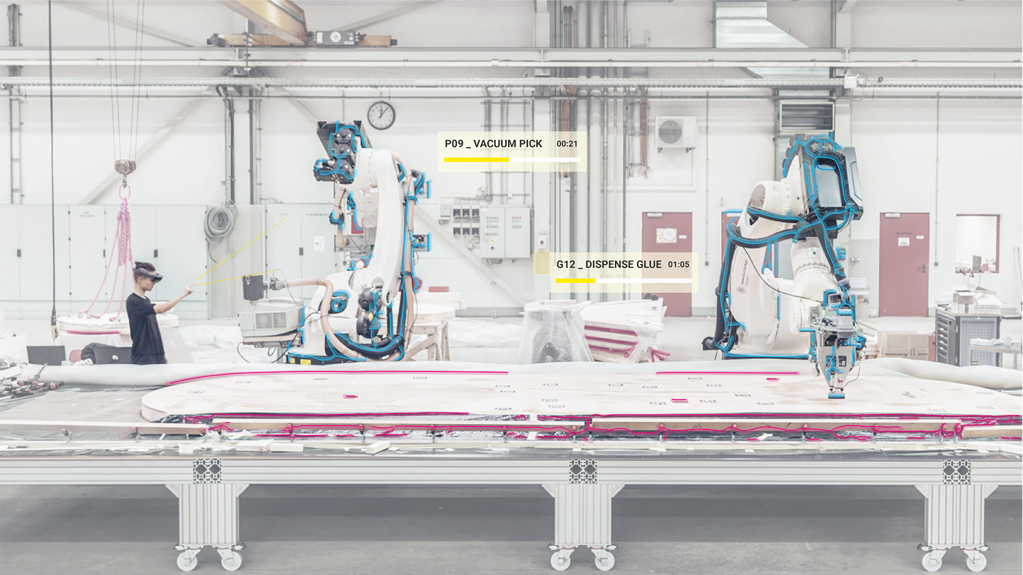 This dissertation presents a conceptual and technical framework for HRC in timber prefabrication, leveraging head-mounted augmented reality displays (AR HMDs) for information delivery and interaction. It proposes methods to design, implement, and evaluate these AR-based HRC workflows, grounded in a human-centred design approach that involved trained carpenters throughout the research process. These developments are accompanied by empirical studies that shed light on craftspeople-technology interactions in timber construction, providing insights for future design and deployment of these technologies in the field.