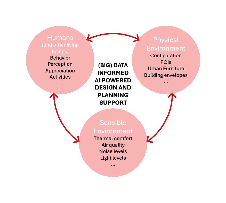 Prof. Dr. Tunçer’s work focuses on the complex relationship between use and usage patterns of (urban) spaces, users’ perception and appreciation of these spaces, and the influence of physical attributes of these spaces on these. She develops data-driven AI methodologies for creating design and decision support tools and platforms that are used by designers, planners, policy makers, engineers, and other stakeholders within the built environment sector. Her chair’s research focuses on data collection, information and knowledge modelling and visualization, for informed architectural and urban design, energy transition, urban resilience, digital construction and linked data, and nature based solutions.
